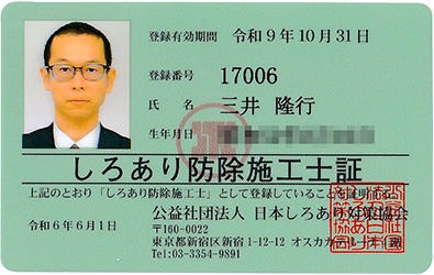 | 保有資格 | \家の周りのことはご相談ください。/ しろあり防除施工士 ![]() 宅地建物取引士 刈払機取扱作業者教育 伐木等特別教育 庭園管理士 |